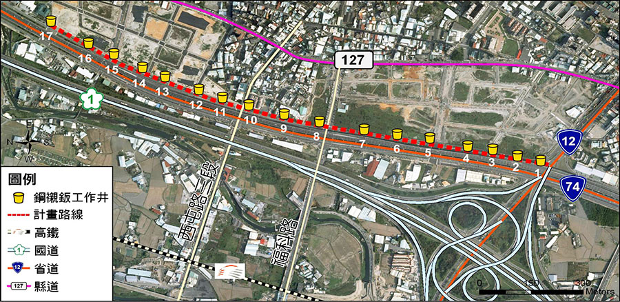 In order to improve the water quality and environmental sanitation of water bodies in the city, reduce the pollution load of water bodies in the downstream, improve the overall urban development of Taichung City and improve the quality of life, so that urban construction and the natural environment can achieve the goal of sustainable development. The municipal government plans to set up sewage sewers in the east of the slow lane of Huanzhong Road in the 12th Fuxing City Rezoning District of Xitun District, Taichung City to the sidewalk, using the closed mechanical propulsion method, the length of the propulsion is 1600m, and the working well part is planned: 9 oval steel-lined sheet metal propulsion working wells (6.64mX3.5m), 8 circular steel-lined sheet metal reaching wells (R=2.0m), reinforced concrete pipes (RCP) are selected for pipes, the pipe diameter size is ψ1200mm, and the total construction period is 570 calendar days.
