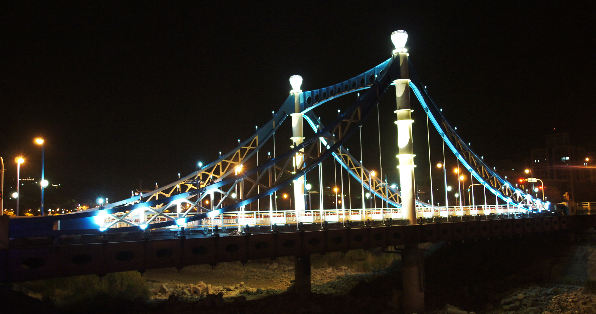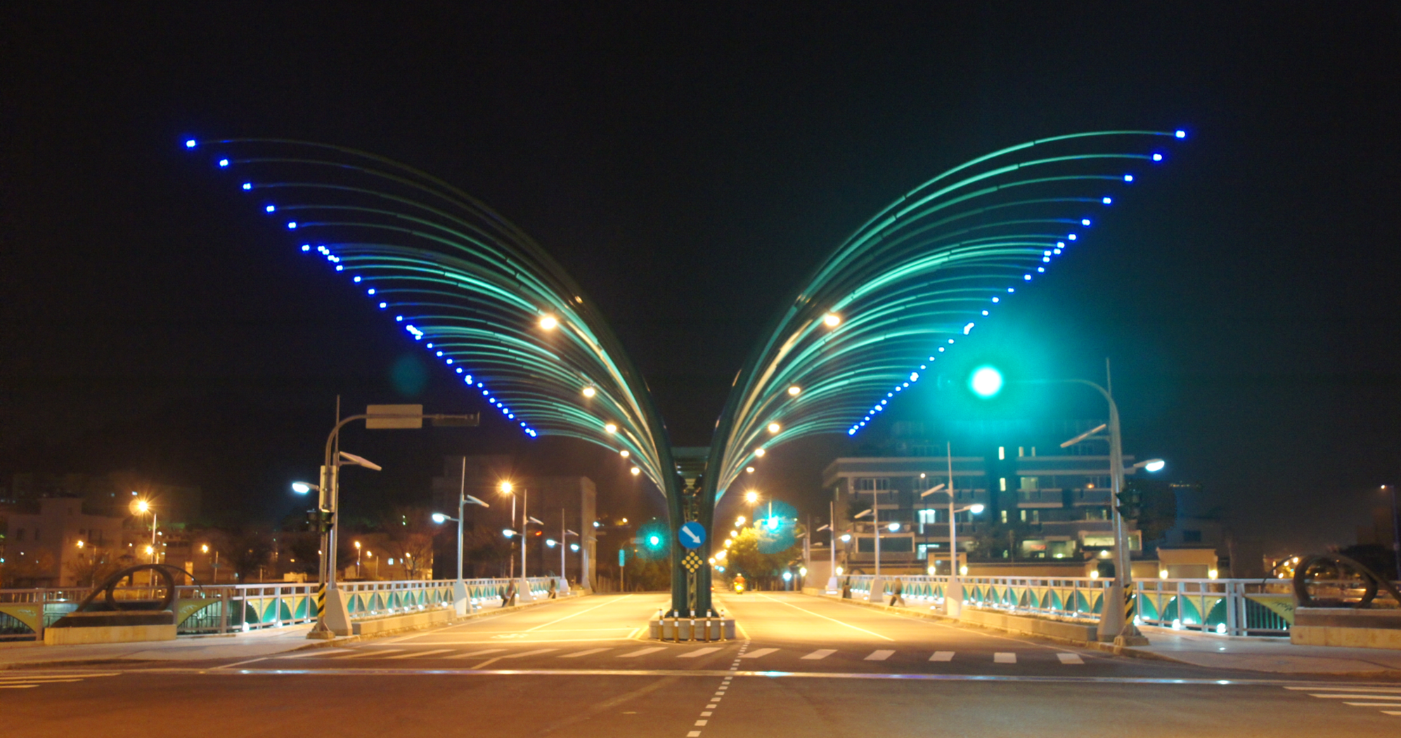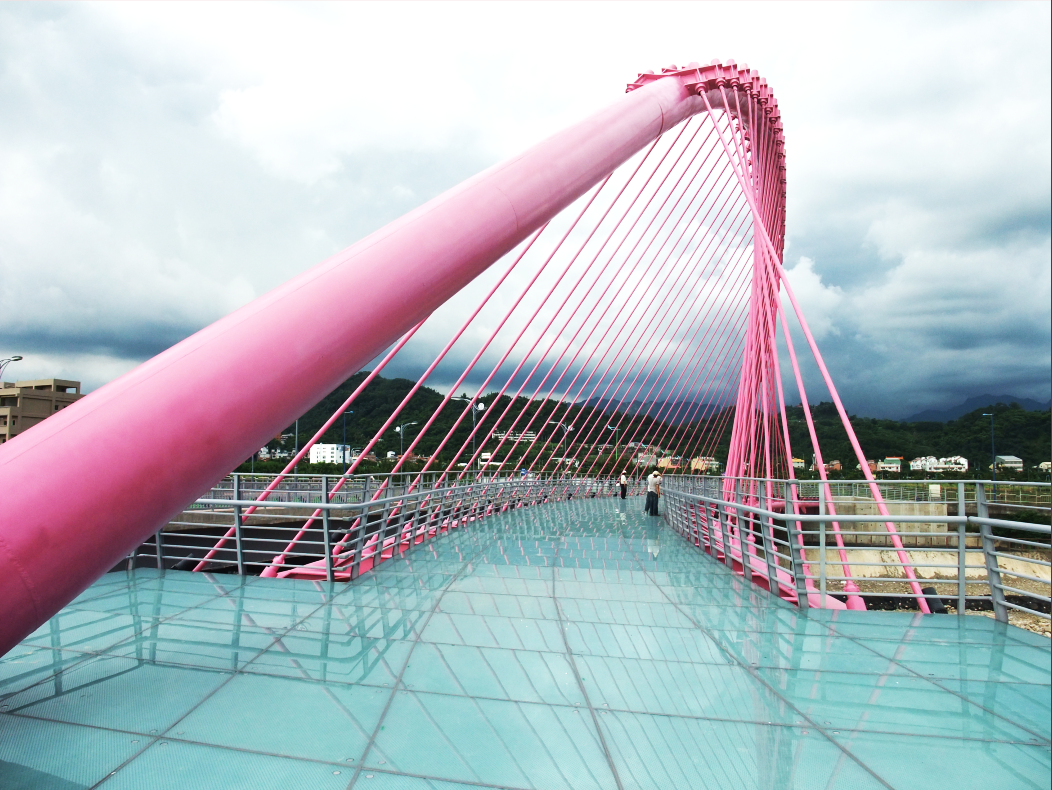 Bridge No. 4 form: duplex structure of truss components and frame components; Features: The bridge tower is made of steel structure, but it has the meaning of oriental culture, the top of the tower adopts the "Temple of Heaven" or the roof head of the classical Chinese pavilion, and the tower pillars imitate the decoration of bamboo joints, and the bridge and the background are integrated visually.