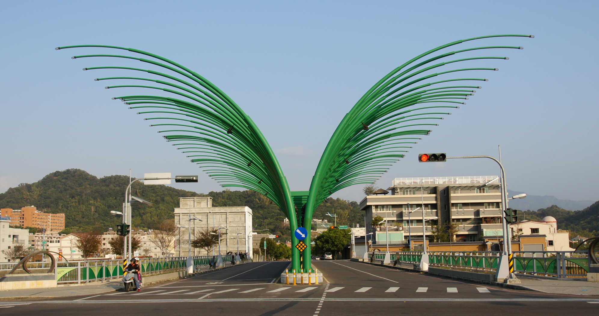 Bridge No. 3 Form: box-shaped steel girder bridge + rib sculpture; Features: The rib sculpture resembles a green forest dancing robe, showing the representation of the green and verdant mountains in the Dakeng area. The front of this shape is ready to go, and the side is like a water dance, creating a sense of sparkling water, and there is a meaning of hot spring country scenery.