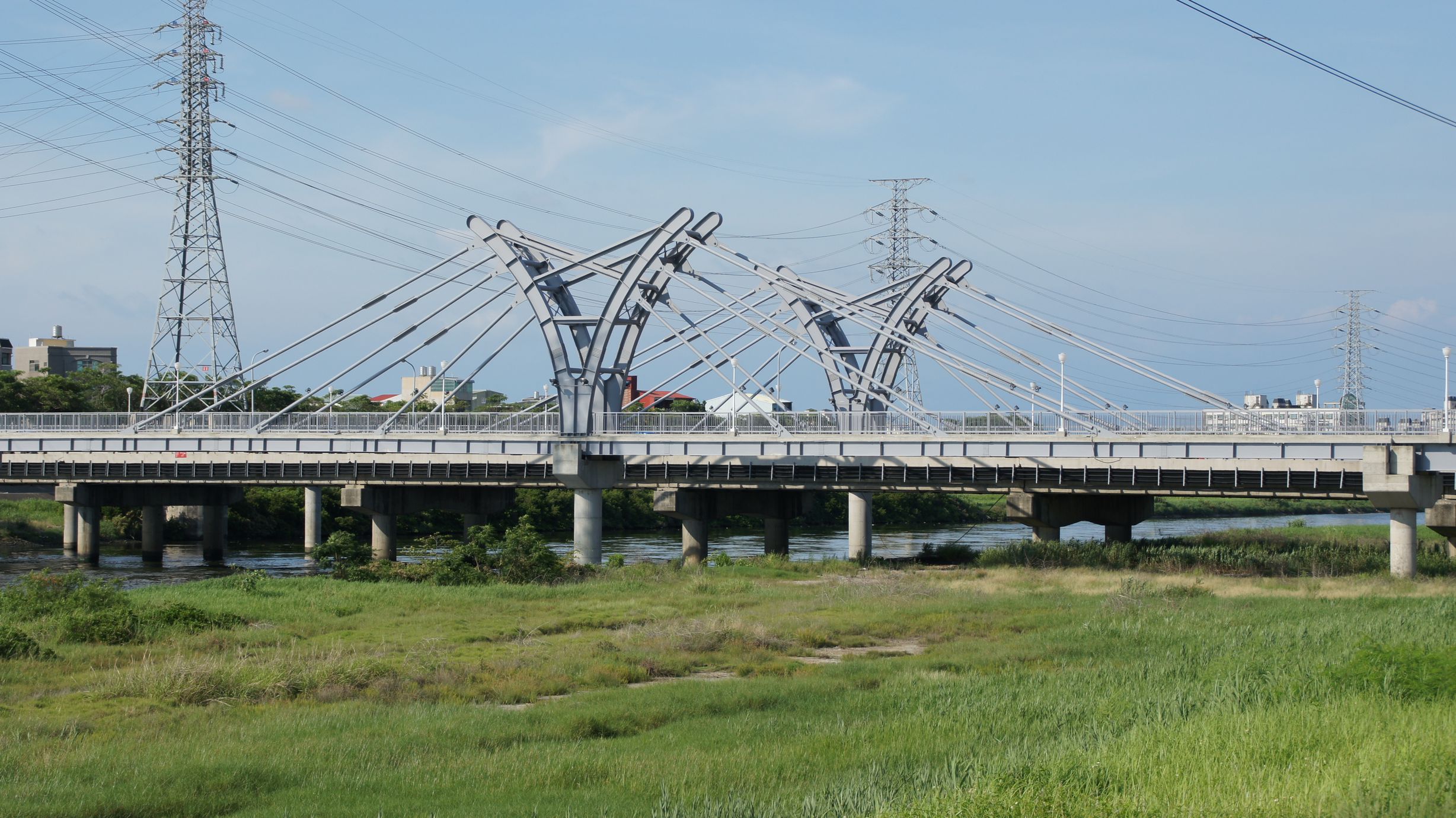 The shape of the main bridge is a back-to-back bridge with "flying birds" as the main body of design, showing the artistic conception of birds "spreading their wings and flying". There are two pedestrian bridges with a length of 206m and 209m respectively. The bridge abandons the pre-stressed steel cable and uses the steel box-type cross-section member as the oblique tension component, which has the advantage that the steel box-type cross-section member is more economical than the pre-stressed steel cable system (including anchor head), and there is no concern about the relaxation of the steel cable, and the height of the King-Post is only about 1/8 to 1/10 of its span, which is much lower than the height of the main tower of the diagonal tension bridge or suspension bridge, which is easier for future bridge maintenance or inspection. On behalf of Tainan City, Benqiao participated in the 2008 National Construction Excellence Award in the Best Planning and Design category and won the Excellence Award.