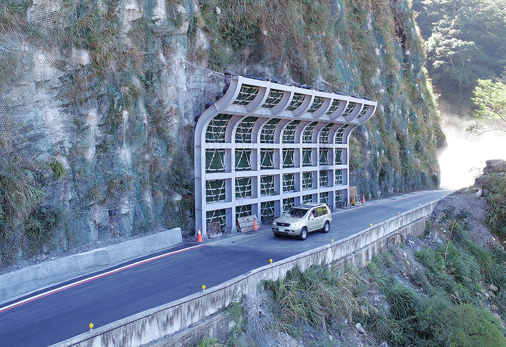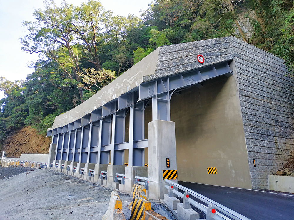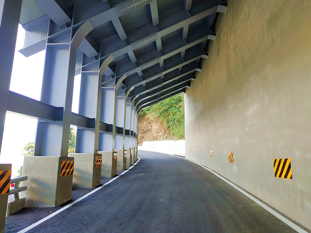 According to the disaster characteristics and local conditions of the slope on the three sites, with a variety of passive and active protection construction methods to ensure the safety of road traffic, the main structures have 59m of reinforced concrete tunnel, 31m of steel structure tunnel, 20m of anti-rockfall grate, sprayed concrete and planting slope protection, etc., with a total project cost of 129 million yuan.