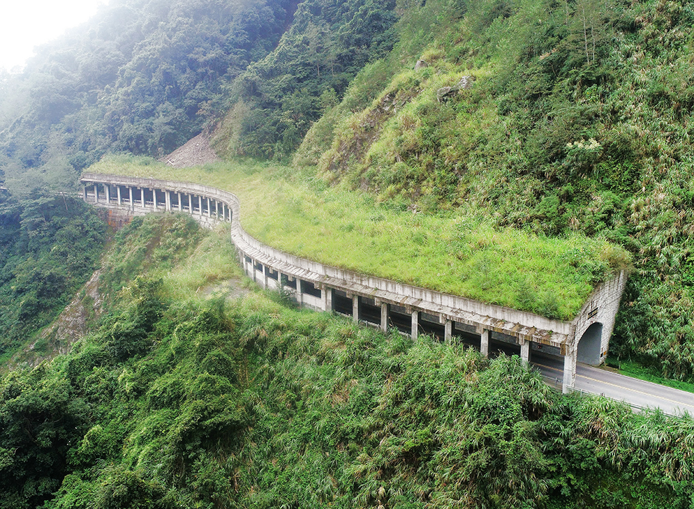The lithology of the upper slope is loose, and the collapse is caused by heavy rainfall, and the reconstruction method adopts the free frame slope protection with the 180m of the open tunnel for protection, and properly uses the gap between the tunnel entrance to create an ecological landscape pool, which won the 102 Golden Road Award and the project cost is 121 million yuan.