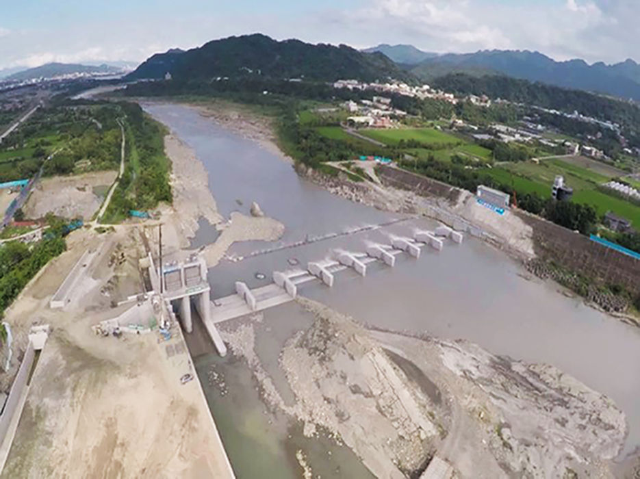 In addition, when the large typhoon and rain events occurred in the past, a large amount of soil and rock brought by the upper reaches of Dahan River caused the turbidity of Shimen Reservoir and Dahan River water sources to soar, exceeding the treatment capacity of the water purification field, resulting in serious water shortages in Taoyuan area and Banxin area, such as when Typhoon Avery hit in 93 years of the Republic of China, resulting in a water shortage in Taoyuan area for 18 consecutive days, which had a great impact on people's livelihood inconvenience and industrial investment willingness. In order to increase the water supply capacity of the regional water source, reduce the risk of water shortage due to the rise of turbidity in the water source of Dahan Creek Yuanshan Weir, remediate the Zhongzhuang waste river channel in response to local needs, and cooperate with the overall environmental construction of the Dahan River section, the Zhongzhuang Adjustment Pond Project Plan - Barrage Project was handled.