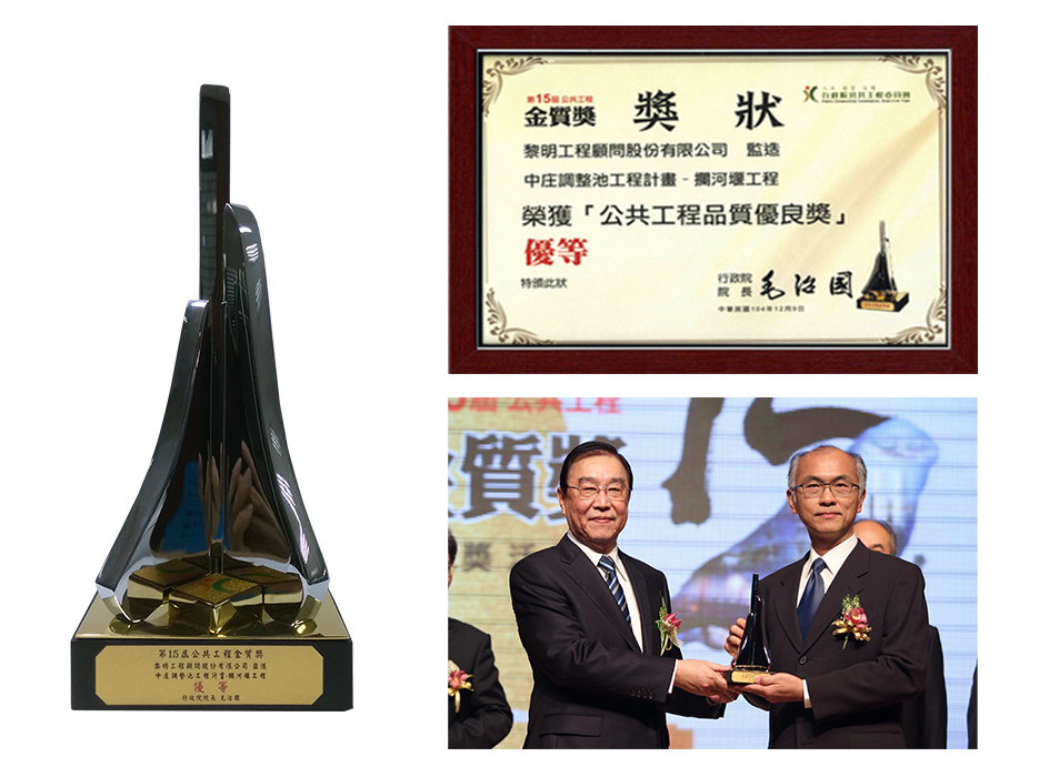 Won the 104th Annual Administrative Agency, the 15th Public Works Gold Award, and the Excellence Award in the Water Conservancy Category Excellent